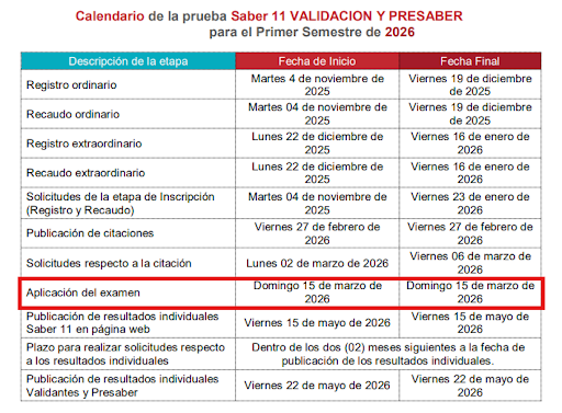 De acuerdo con el cronograma oficial, estas son las fechas más importantes para el primer semestre de 2026: